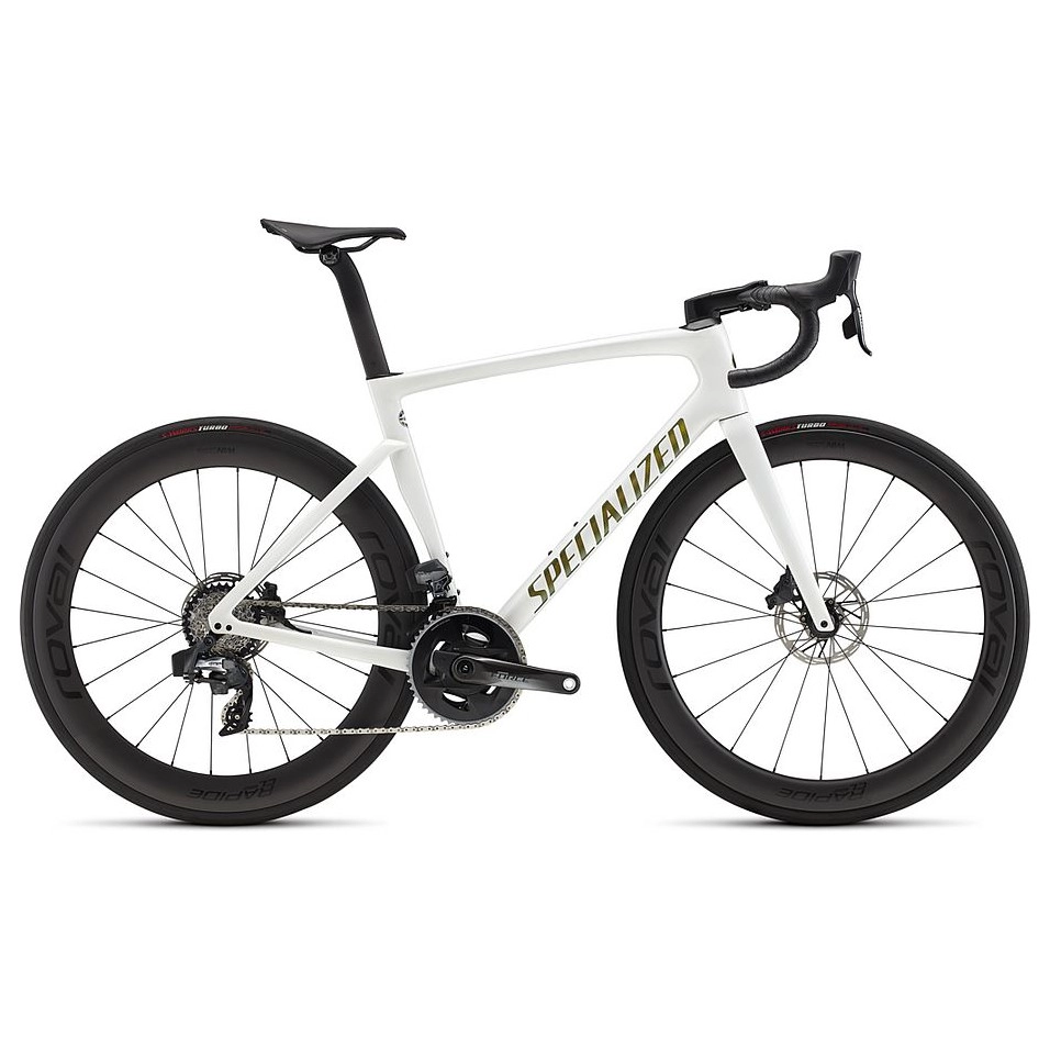 | Llantas | Roval Rapide CL, 21mm internal width carbon rim, Win Tunnel Engineered, DT for Roval 350 hub, DT Swiss Revolution spokes |